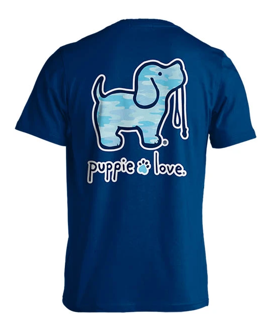 Cute and camouflage go together with this adorable puppie t-shirt! 10% of proceeds from the Puppie love shirt line go to rescue shelters around the US.